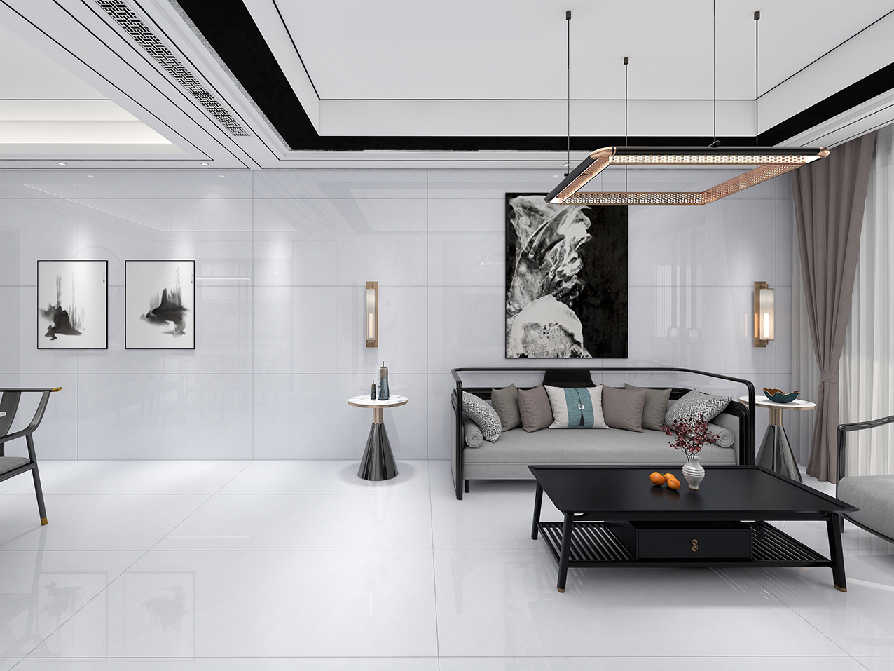 2、易于清洁:瓷砖表面光滑,不易沾附灰尘和污渍,客厅瓷砖上墙后日常清洁只需用湿布擦拭即可,保持墙面整洁如新。即便是家里有孩子,他们在墙上随意涂鸦,也能轻松去除。